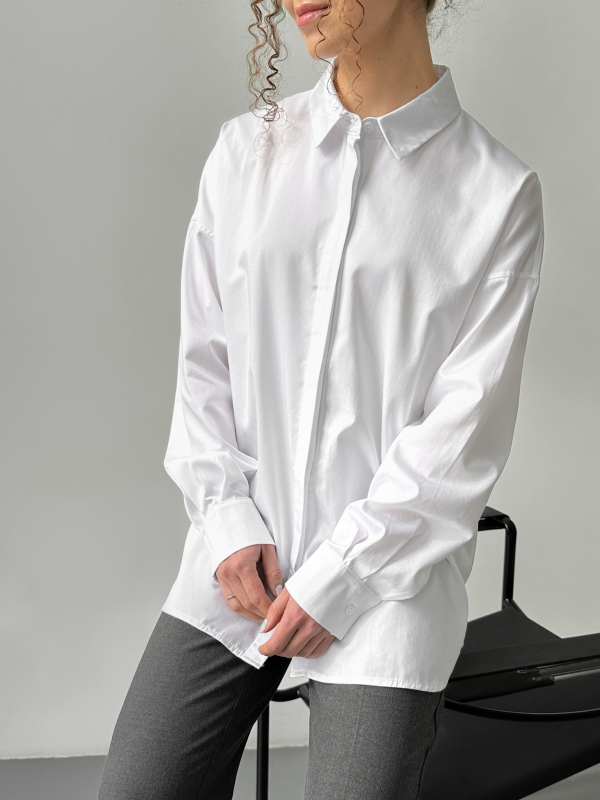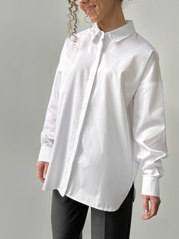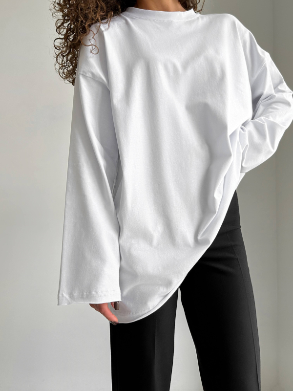 Трендовий багет із якісної еко-шкіри білого кольору. Всередині відділення, підкладка та кишені. Застібається блискавкою. Довжина ремінця регулюється.